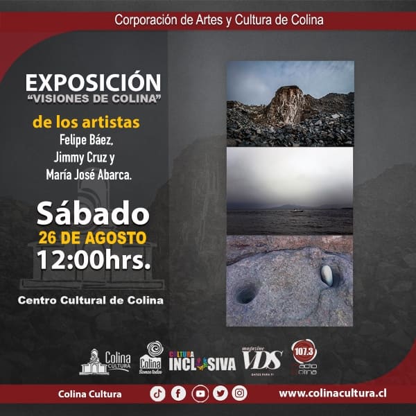 Este sábado 26 de agosto, se inaugurarán dos nuevas exposiciones: “Homenaje a Gracia Barros” y “Visiones de Colina”, las cuales estarán disponibles desde las 12:00 horas en el Centro Cultural de Colina, ubicado en avenida Inmaculada Concepción #398.
