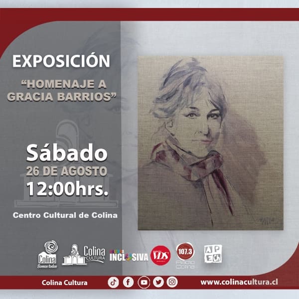 Este sábado 26 de agosto, se inaugurarán dos nuevas exposiciones: “Homenaje a Gracia Barros” y “Visiones de Colina”, las cuales estarán disponibles desde las 12:00 horas en el Centro Cultural de Colina, ubicado en avenida Inmaculada Concepción #398.